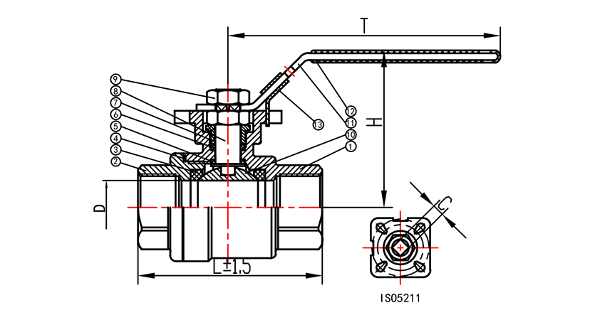 二片式高平臺(tái)內(nèi)螺紋球閥主要配件材料表