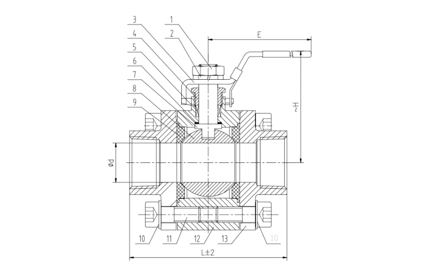 三片式高壓2000WOG內(nèi)螺紋球閥結(jié)構(gòu):由閥體,閥蓋結(jié)合球芯組裝而成,球芯利用閥桿連接,軸旋轉(zhuǎn)90度可實現(xiàn)開啟關(guān)閉作用。主要用于管道開關(guān),緊急切斷,也可以設(shè)計球芯V型開口達到流量調(diào)節(jié)功能。